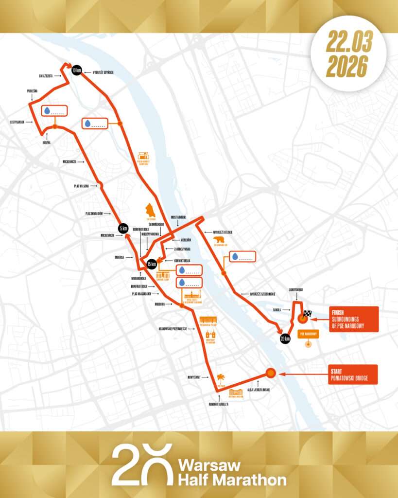 Traffic alterations near the starting line of the 20th Warsaw Half Marathon on Poniatowski Bridge will begin at 7:00 PM on Saturday, March 21, 2026. We advise all drivers to familiarize themselves with the schedule of changes!