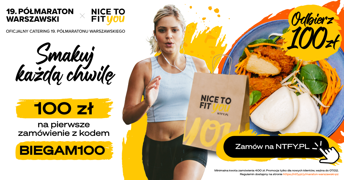 Bieganie to nie tylko pasja – to rytm Twojego życia, sposób na przekraczanie granic i codzienna dawka endorfin. Dlatego w Nice To Fit You przygotowaliśmy coś specjalnie dla Ciebie – 100 zł rabatu na Twoje pierwsze zamówienie o wartości min. 400 zł! Wystarczy, że podczas składania zamówienia wpiszesz kod BIEGAM100, a my zadbamy o to, byś miał pełnię sił na każdy trening. 💪🥗