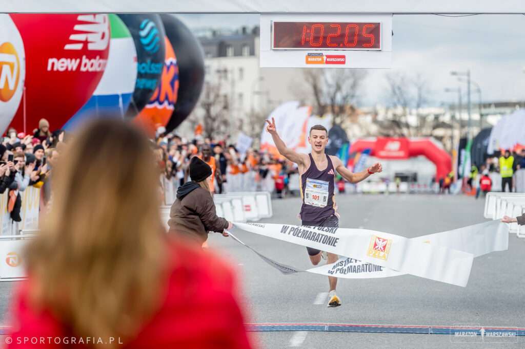 Mateusz Kaczor, ustanawiający swój rekord życiowy na trasie Półmaratonu Warszawskiego
